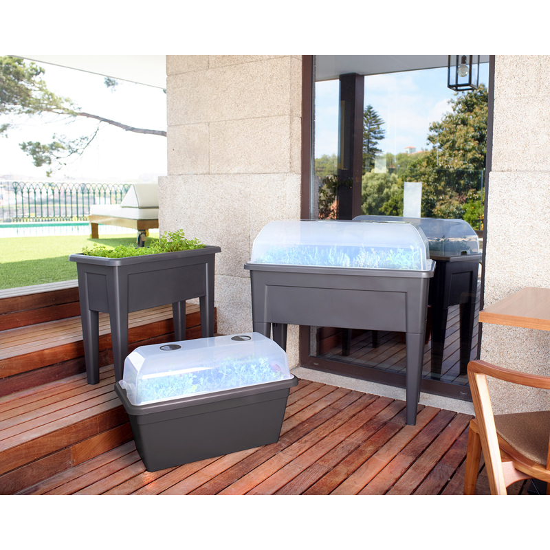 Conçu pour créer les meilleures conditions de croissance, ce couvercle transparent possède un ensemble de caractéristiques qui non seulement rendront les plantes plus heureuses mais les feront grandir en bonne santé et en force. Sa finition translucide et le fait qu’il protège les plantes du vent ou de la chaleur excessive en font un environnement idéal pour la germination ou la floraison. En outre, il possède deux trous de respiration pour la circulation de l’air et le flux d’oxygène. Disponible en deux tailles, il s’adapte aux deux tailles de boîtes de culture Venezia et convient parfaitement à la boîte à plantes Venezia XL de 80 cm.