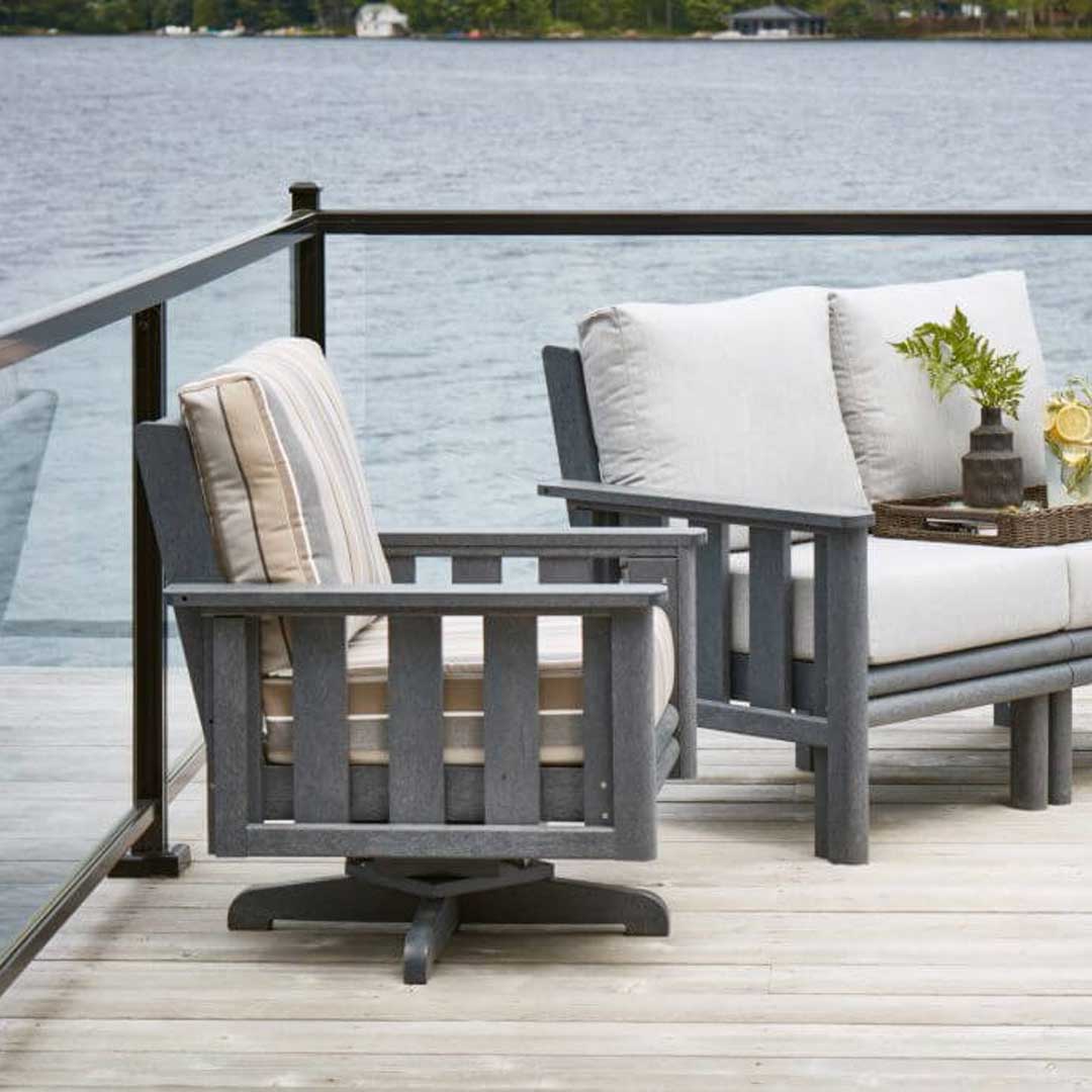 Un fauteuil au style mission traditionnel qui allie confort et fonctionnalité. Doté d’un mécanisme pivotant fluide, il offre une liberté de mouvement optimale tout en conservant son allure élégante. Fabriqué à partir de plastiques recyclés, il est conçu pour résister aux intempéries et durer dans le temps.