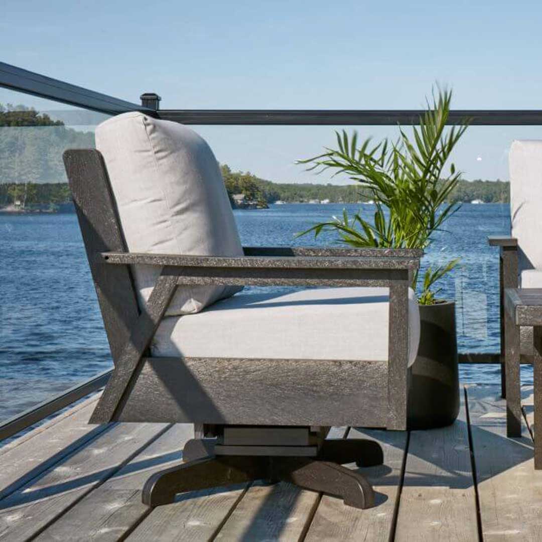 Apportez une touche de modernité et de confort à votre espace extérieur avec le fauteuil pivotant Tofino. Son mécanisme pivotant offre une grande liberté de mouvement, tandis que sa fabrication en plastique recyclé garantit une durabilité et une résistance aux intempéries exceptionnelles.