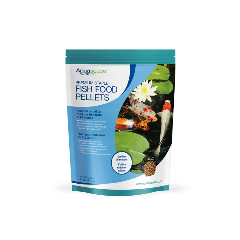 Si vous voulez des poissons de bassin heureux et en bonne santé, vous devez leur donner une nourriture de haute qualité. Les granulés Aquascape Premium Staple Fish Food sont formulés pour un usage quotidien et fournissent à vos poissons d’étang la nutrition dont ils ont besoin pour prospérer, à un prix abordable. Tous les aliments pour poissons Aquascape contiennent des probiotiques qui facilitent la digestion et réduisent les déchets des poissons, tandis que les protéines de haute qualité incluses aident à optimiser les taux de croissance. Les granulés flottants contiennent de la vitamine C stabilisée et d’autres ingrédients de qualité et sont scientifiquement formulés pour tous les poissons de bassin, y compris les koïs et les poissons rouges. La nourriture pour poissons Aquascape ne se désagrège pas pendant l’alimentation, ce qui contribue à maintenir des conditions d’eau claire.