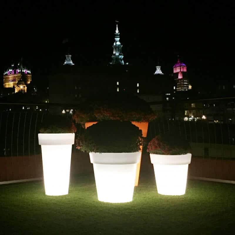 La collection TERA, c’est le pot classique fait de terre cuite, en version très grand format et incassable. L’ajout de la lumière crée un effet WOW assuré. La résine polymère rend les produits faciles à transporter et durables pendant des années, été comme hiver.