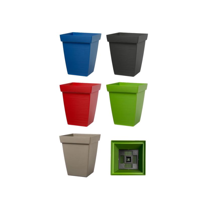 Jardinières de style contemporain ayant un fini unique avec texture horizontale, réservoir d’eau et protection anti-débordement