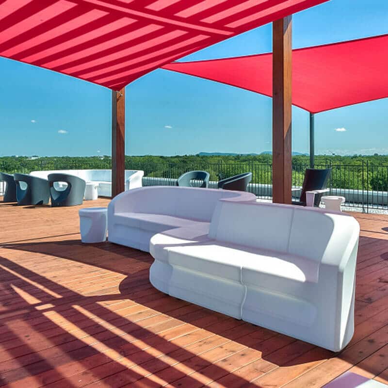 CURVA, c’est un sectionnel aux possibilités infinies. Les 6 modules s’agencent parfaitement et vous permettent de créer votre configuration selon vos besoins. Résistant, il peut demeurer l’hiver sur la terrasse.