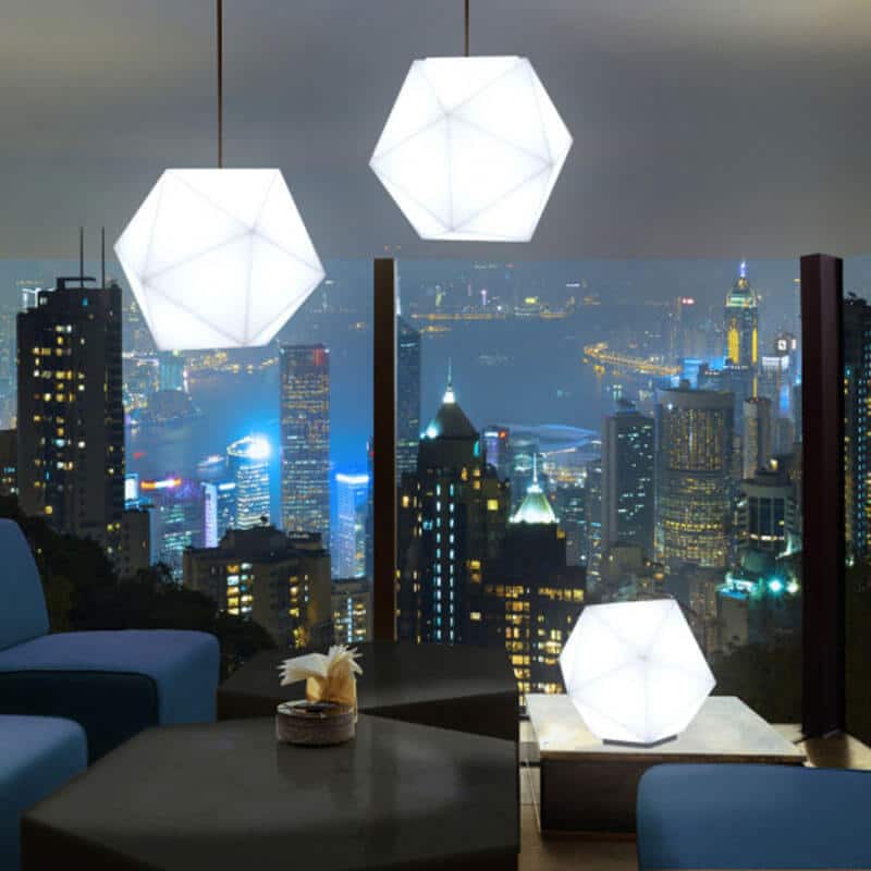 TRIAD LUX est un prisme lumineux aux lignes géométriques. Suspendu ou posé au sol, il crée une atmosphère féérique garantie.